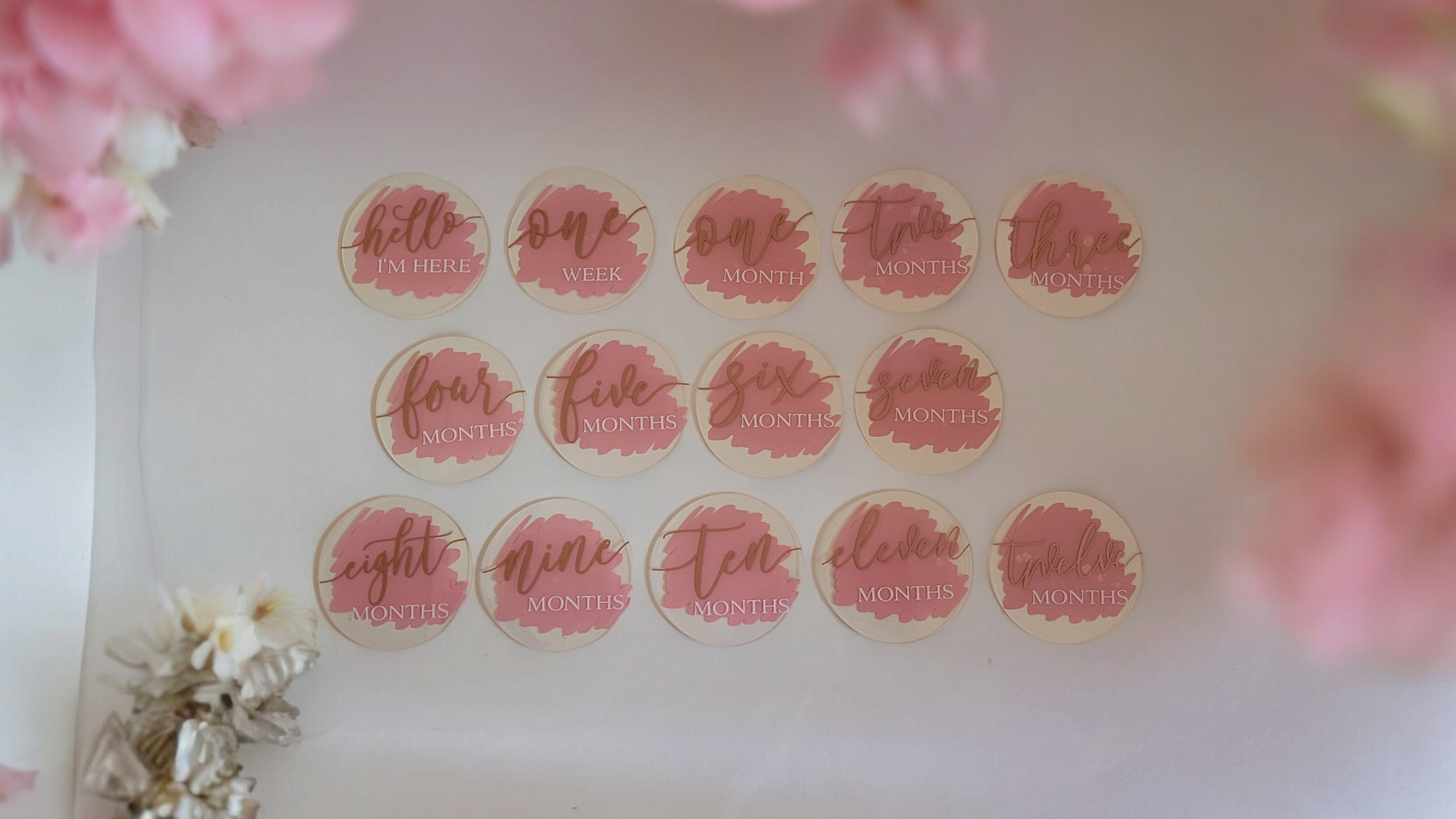 Celebrate baby's milestones with these playful discs made from durable, clear acrylic. Each disc features a colored background, perfect for capturing those precious moments. Say cheese (or gurgle, or spit up) for the camera and let the babysharks (er, I mean, parents) snap away with these adorable milestone discs!