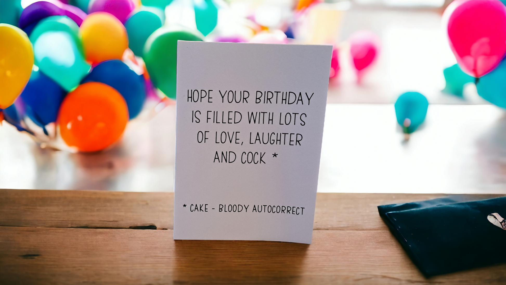 Celebrate their special day with this cheeky birthday card that's perfect for those who love cake, not c**k. Featuring a playful autocorrect twist, it's sure to bring a smile to their face. A unique and fun way to wish them a happy birthday!