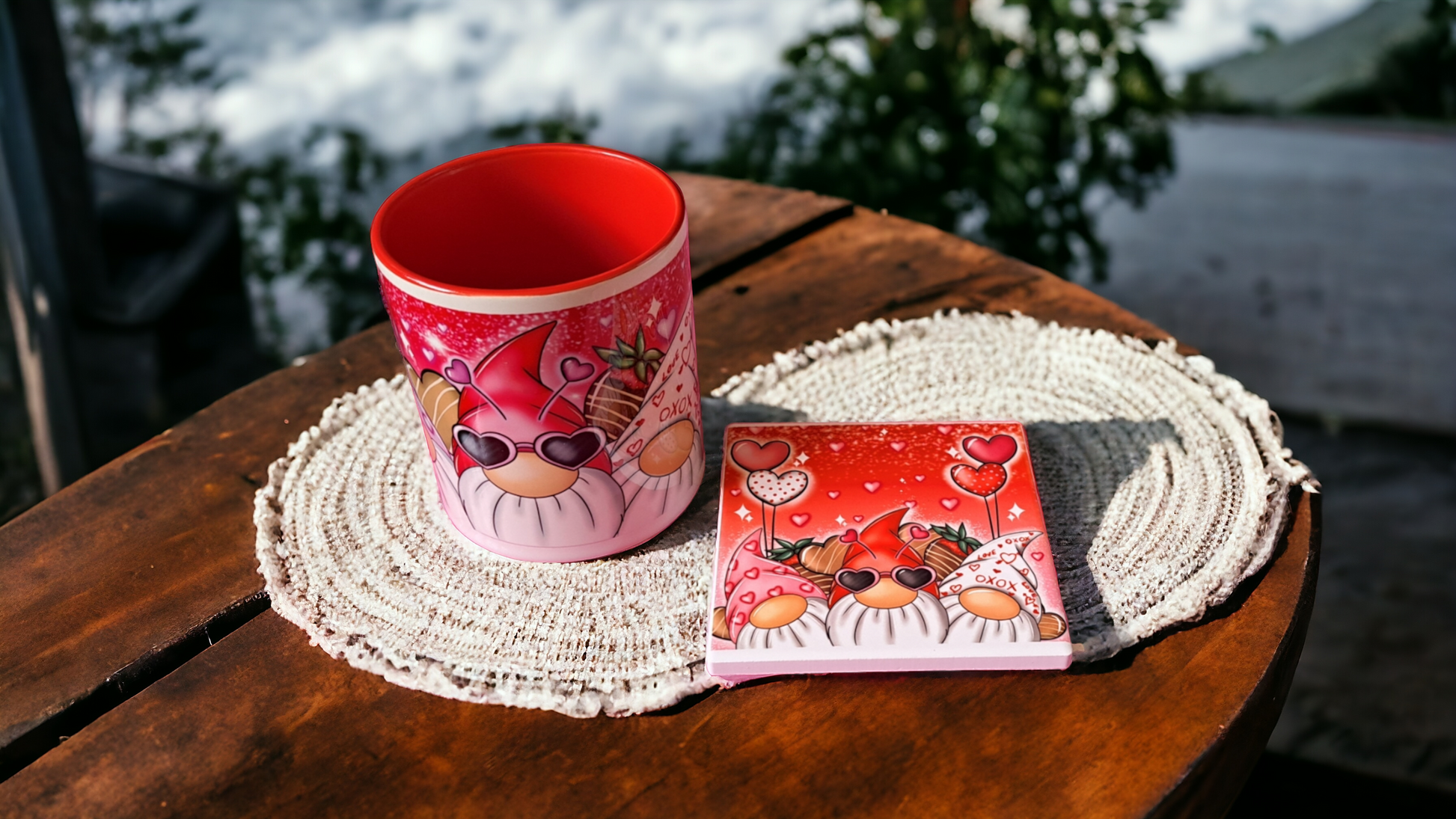 Indulge in luxury with our Love Gonks mug and coaster set. With charming gonks and sweet hearts, this set adds a touch of whimsy to your daily routine. Sip your favorite beverage and protect your surfaces in style. The perfect gift for yourself or a loved one.