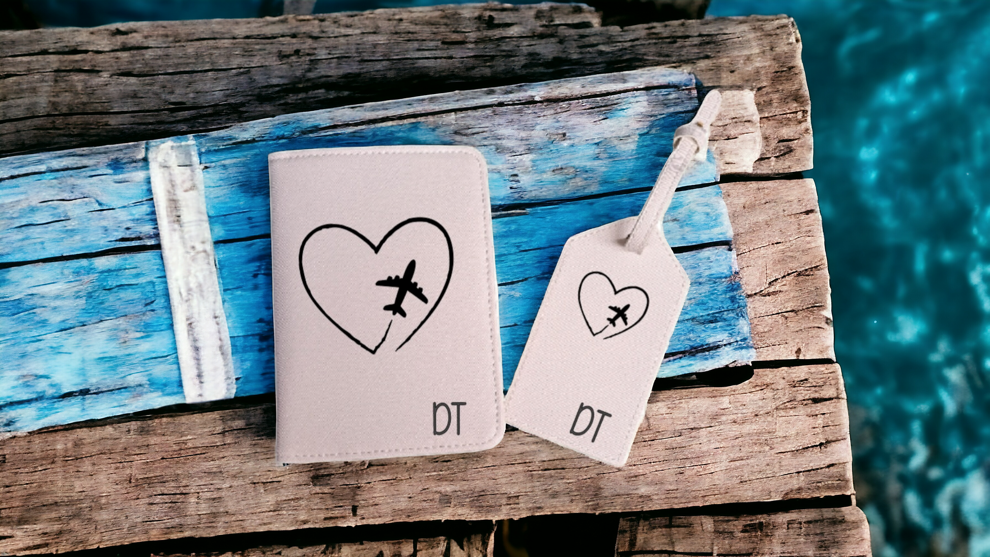 Make your travels luxurious with this personalised passport holder and luggage tag set. Keep your passport safe and easily identifiable with the holder, featuring your initials. And add a touch of style to your luggage with the matching tag. Bon voyage!
