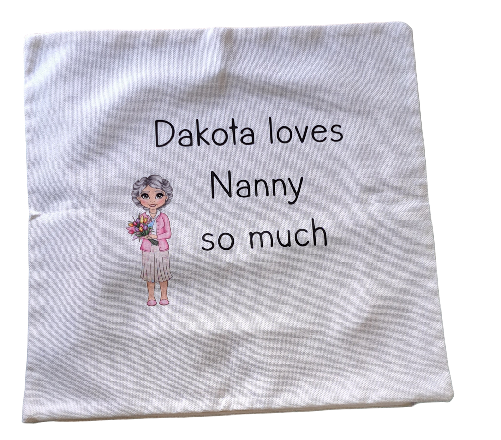 "Make grandma's day extra cozy with a personalised cushion just for her. Perfect for Nan, Nanny, Nana, or Mama, this cushion will remind her how loved she is every time she sits down. Add a special touch to any room with this custom item."
