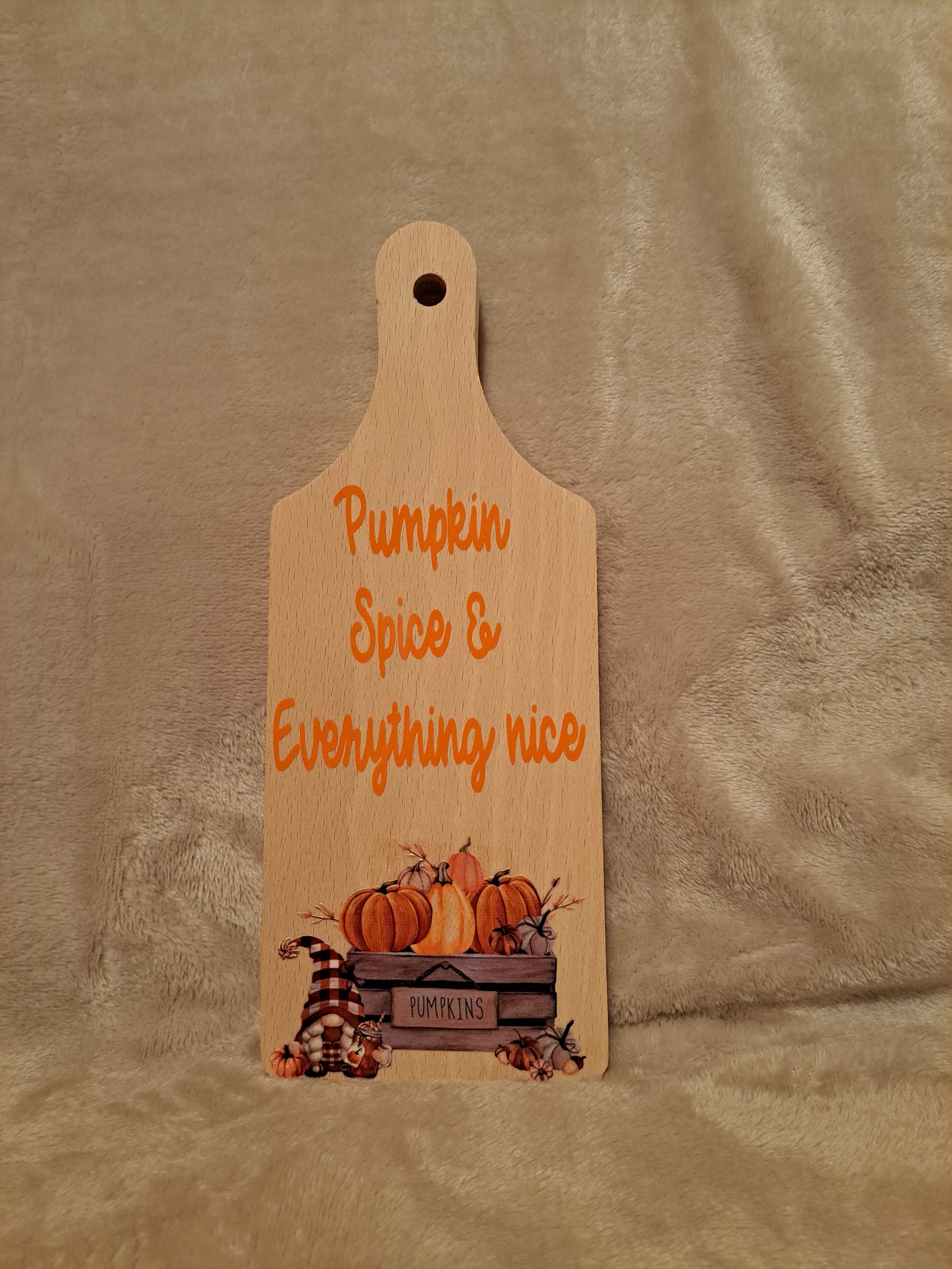 This Pumpkin Spice Board is a luxurious home décor piece that captures the essence of autumn with its beautiful pumpkin and gonk. Add a touch of sophistication and beauty to any room with this unique board.