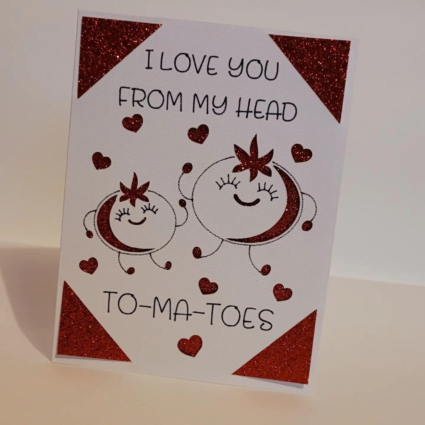 For the person who means more than words can say, express your love with this punny card! Featuring a head-to-toe tomato to symbolize your feelings, this Love you from my head To-ma-toes card will bring a chuckle and a hug to your special someone!